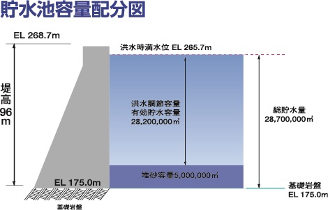 | 堤高 | 96m(基礎地盤から堤頂まで) |