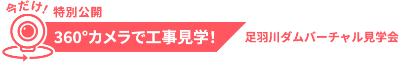 足羽川ダムでは、ダム建設現場の迫力や土木工事の面白さを見て頂けるよう、360°カメラで現場を撮影したバーチャル見学コーナーを設けました。