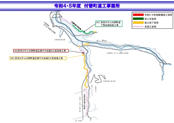 | 付替町道 | [41] 足羽川ダム付替町道下荒谷線改良工事 | 令和3年度からの継続 |