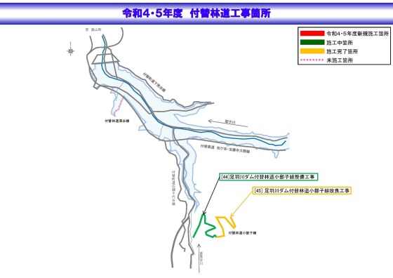 | 付替林道 | [44] 足羽川ダム付替林道小部子線整備工事 | 契約済み |
