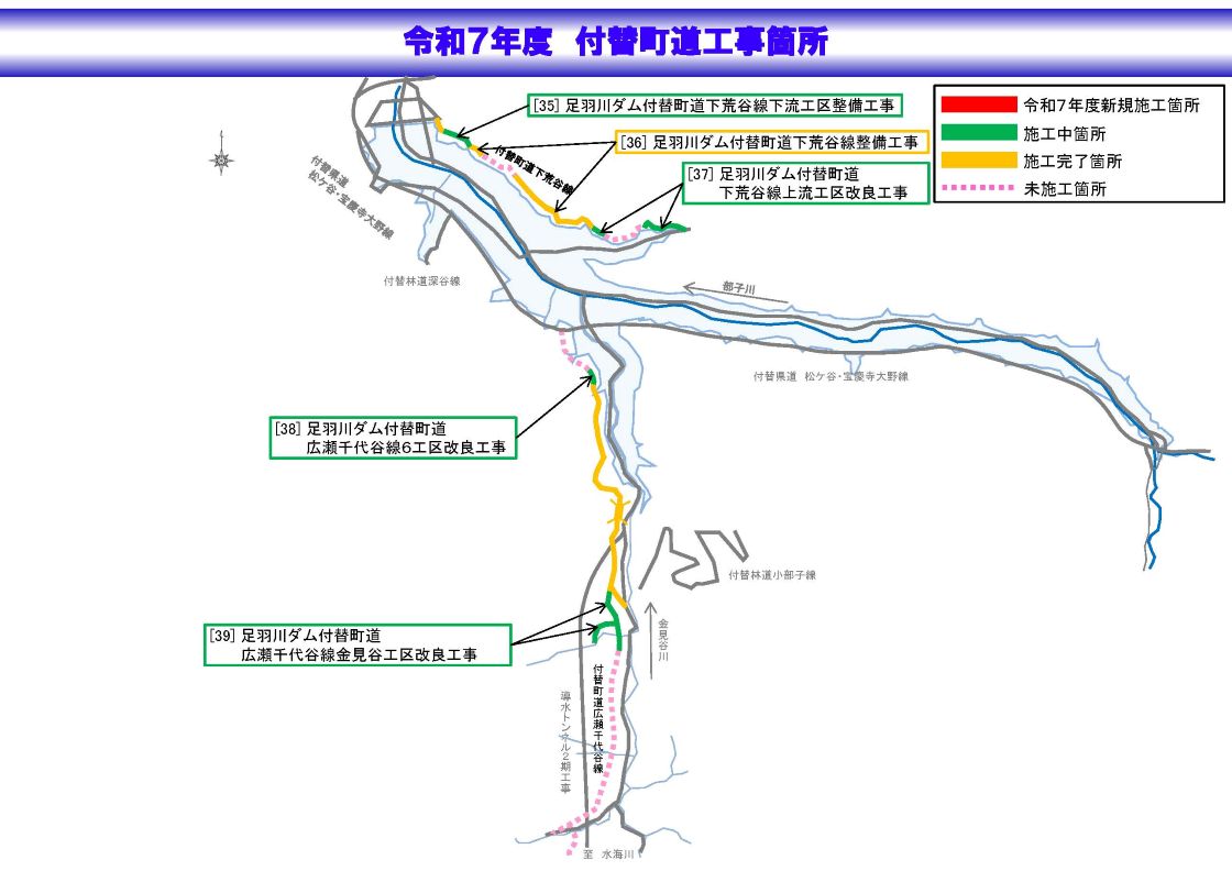 | 付替町道 | [35] 足羽川ダム付替町道下荒谷線下流工区整備工事 | 契約済み |