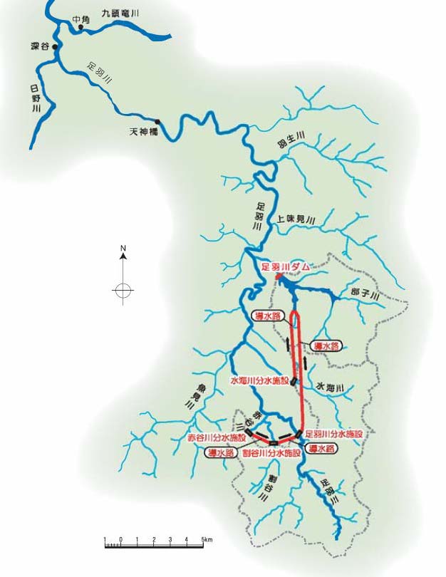 足羽川ダム計画(案)は、足羽川、日野川、九頭竜川の下流域における洪水被害の軽減を目的として、九頭竜川水系足羽川の支川部子川(福井県今立郡池田町小畑地先)に洪水調節専用のダムと併せて、他流域の4河川(水海川、足羽川、割谷川、赤谷川)の洪水を導水するための分水施設(堰・導水トンネル)を整備するものです。