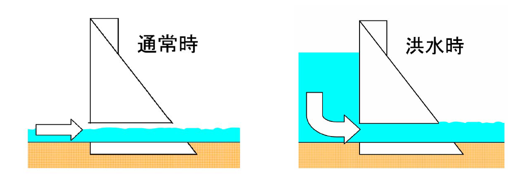 利水:利水機能をもたず、通常時ダムに水を貯めません。