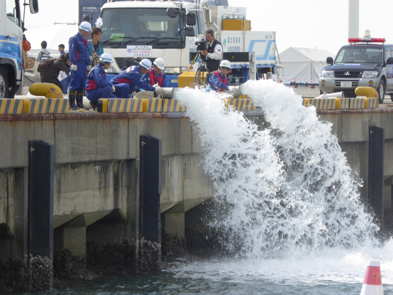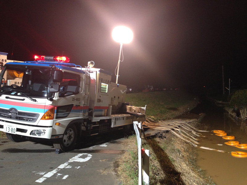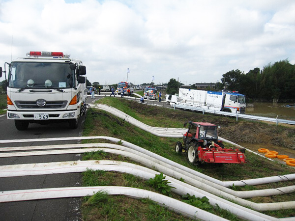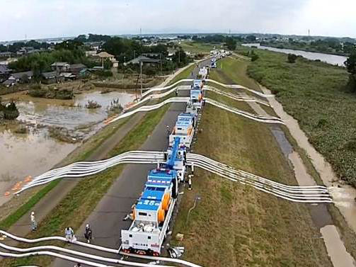 | 氾濫や道路のアンダーパス部分の浸水など、緊急排水が必要な場合に活躍。 一分間にドラム缶で約150本分の排水が可能です。 |