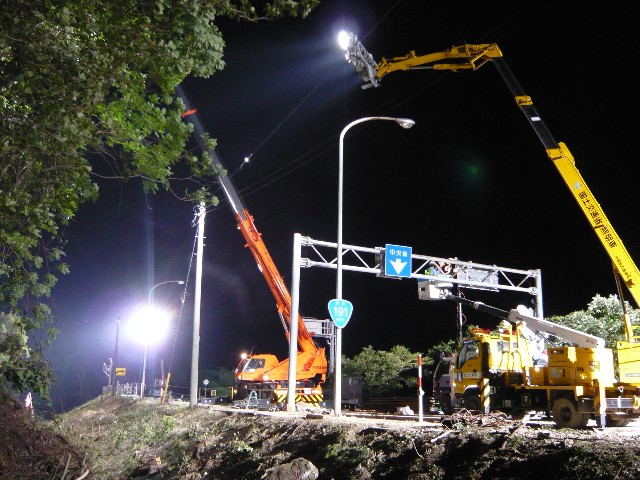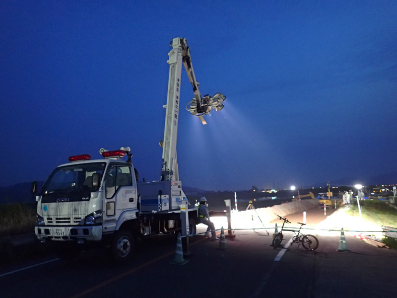 | 道路法面の崩壊等、早期復旧のための夜間作業が必要な場合に活躍。 高所からの照明により救出・復旧作業を24時間支援可能にします。 |