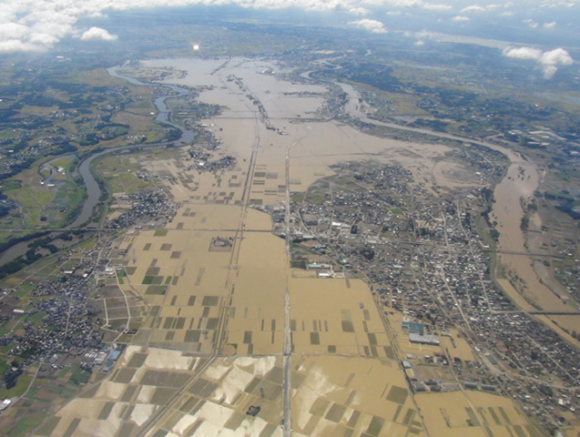 防災ヘリコプターから撮影(関東東北豪雨 浸水状況) |