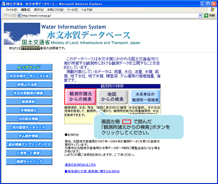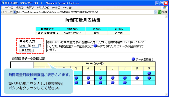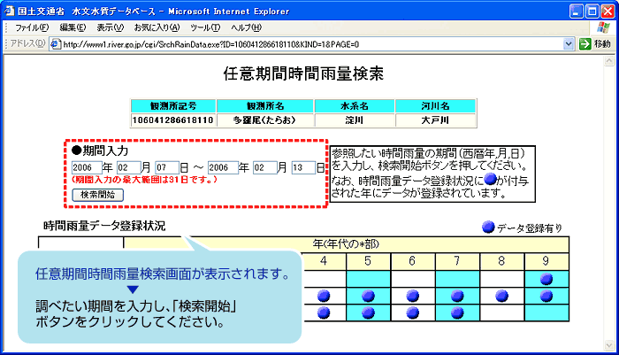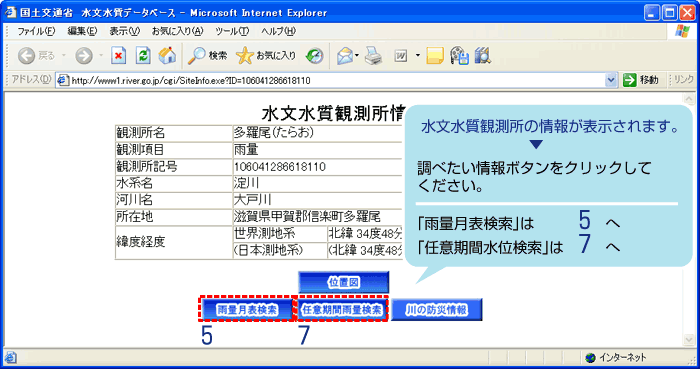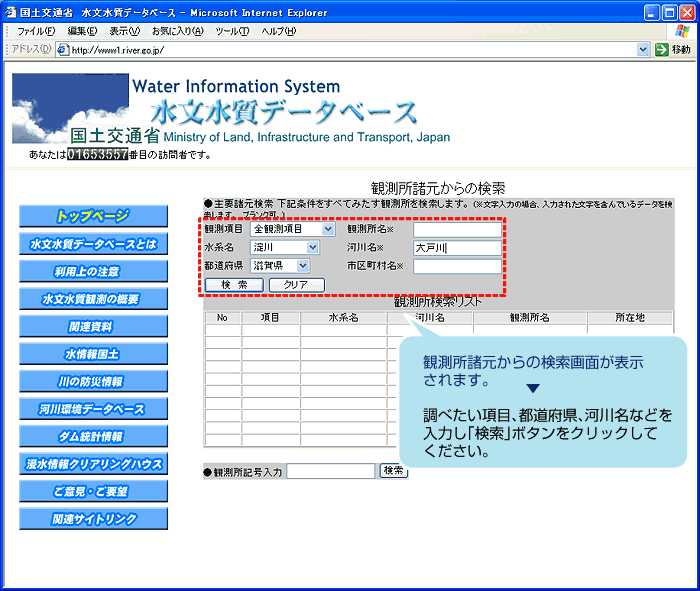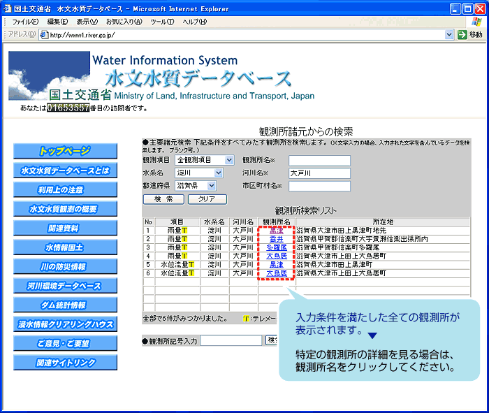 例:大戸川の観測所のうち、滋賀県にある観測所を調べる場合