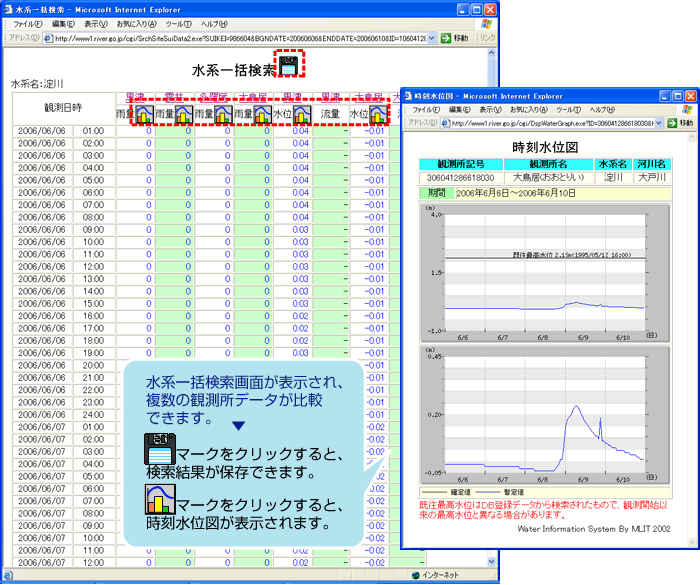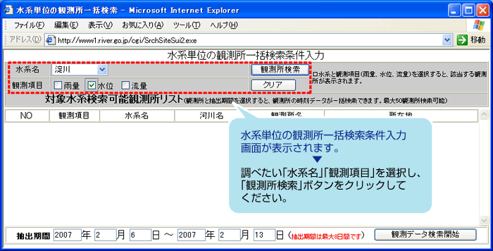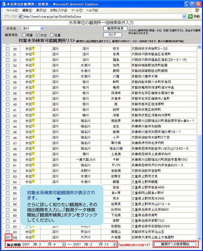 水系単位の観測所一括検索