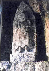 上田上牧町字中島の大戸川沿いにまつられている小さな石仏。この石仏に参れば、虫歯が治るという。