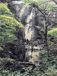 大津市大石の信楽川、八淵の滝(大滝)の近く、笹間ケ岳の山麓にある奇岩。烏帽子の形に似ているのでこの名がある。国道307号より望むことができる。