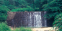 鎧堰堤と同じく、明治政府が招いたオランダ人技師ヨハネス・デ・レーケの指導により、田辺義三郎が設計・監督した砂防堰堤。大津市上田上桐生町の草津川に残る。