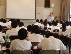 今回、その学習の一環として平成19年7月6日に大江中学校にて由良川と大江町についての出前講座を行いました。