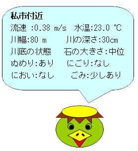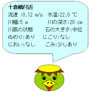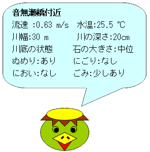 川の生きものを見つけることで、その場所の水質(水のきれいさ)がわかります。
