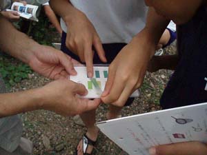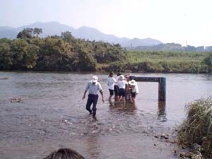 | 東陵中学校からは、地元に流れる川について関心を深め、環境問題について学習するきっかけになったとのコメントを頂きました。 実施日:平成18年9月19日 実施日:由良川水系上林川十倉橋 水質の判定:Ⅰ(きれいな水) |
