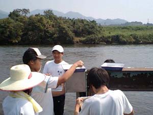 | 南陵中学校理科クラブでは10年以上続けて由良川の水質調査に取り組んでおられます。 今年度は、由良川の水質について更に学ばれ、京都府主催の由良川サミットでその成果を発表されました。 実施日:平成18年8月4日 実施日:由良川音無瀬橋 水質の判定:Ⅰ(きれいな水) |