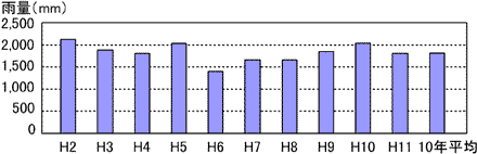 | 年別 | ダム流域平均雨量 | 年別 | ダム流域平均雨量 | |