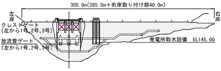 | 放流設備 | クレストゲート | 3門(高さ11.6m×幅9.5m) |