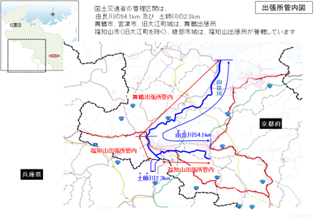福知山市(旧大江町を除く)、綾部市域:国土交通省 福知山出張所(電話:0773-22-2861)