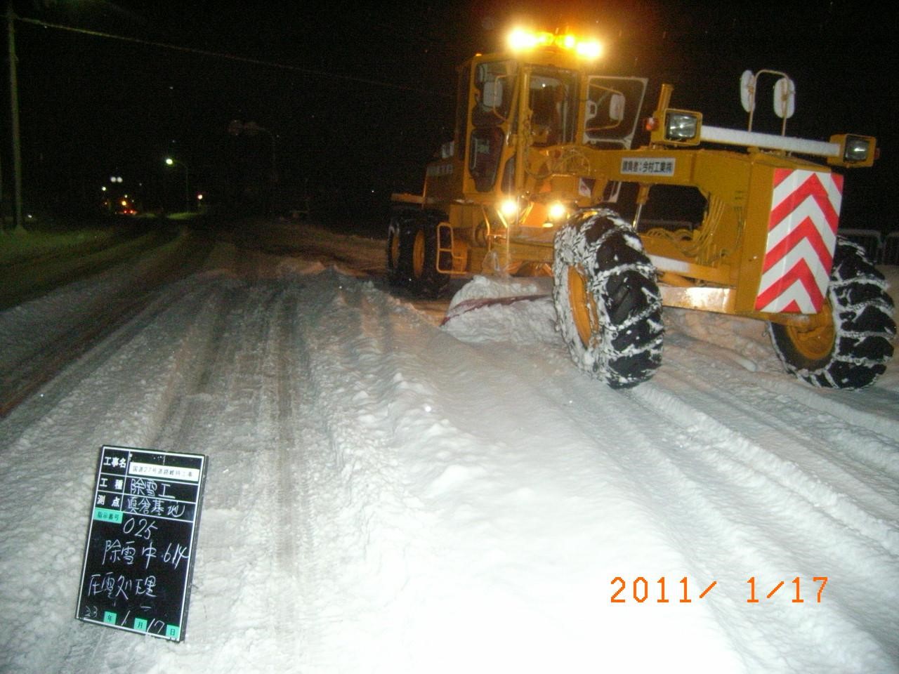除雪作業については降雪時に除雪トラックによる新雪除雪、積雪時には除雪グレーダによる拡幅除雪を行います。
