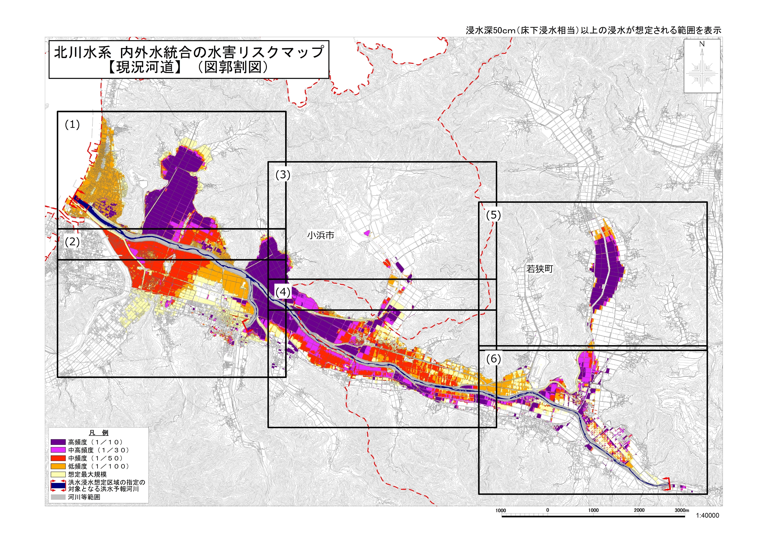 北川水系 水害リスクマップ 【現況河道】 浸水深0.5m以上(床上浸水相当)