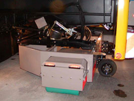 道路の下に空洞(くうどう)がないか調査(ちょうさ)をする車です。 道路の下に空洞があると、道路が陥没(かんぼつ)したりして、 車の運転が非常(ひじょう)に危険(きけん)になります。レーダアンテナを使って空洞(くうどう)を調査(ちょうさ)することで、陥没(かんぼつ)を未然(みぜん)に防(ふせ)ぐことができます。