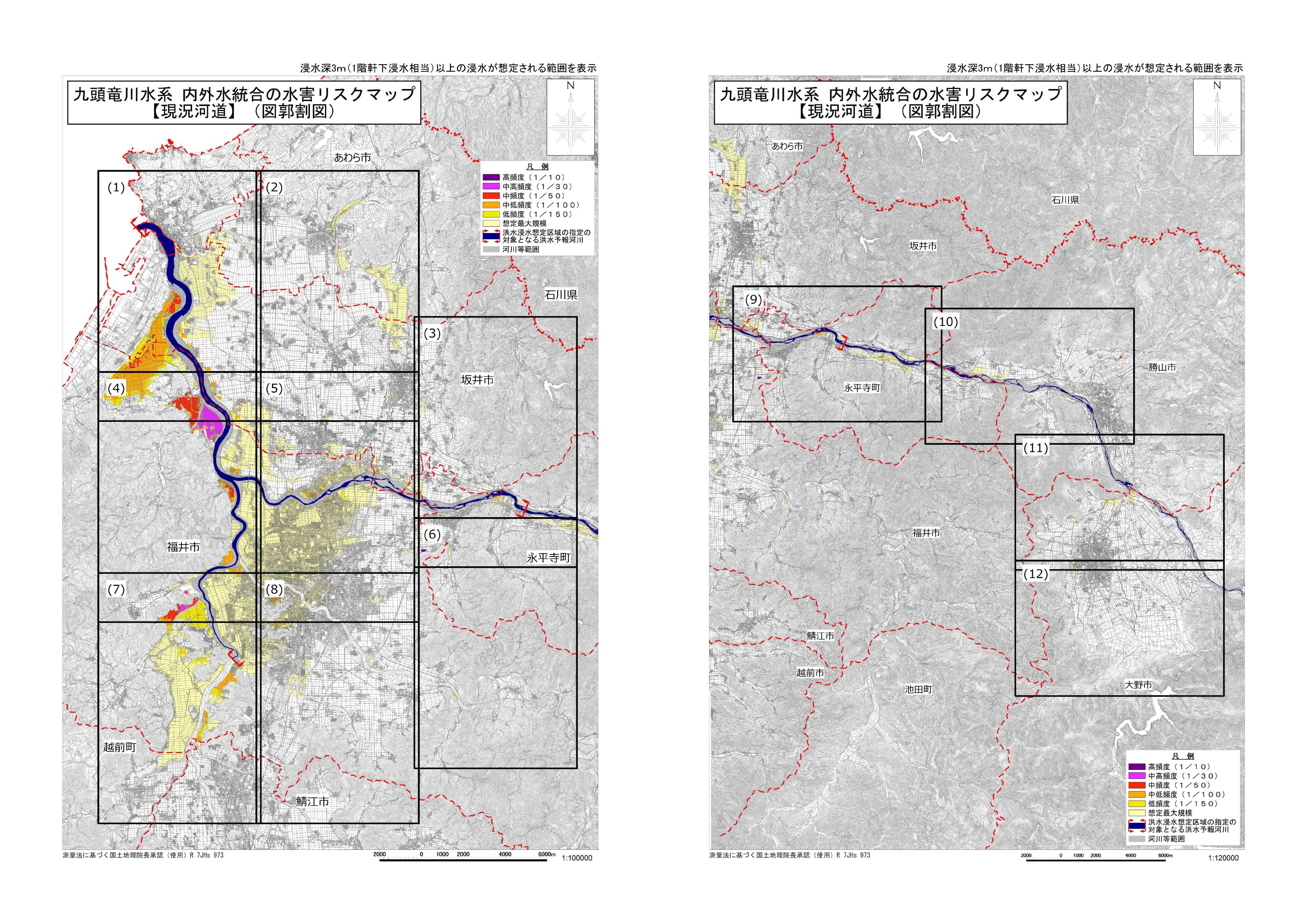九頭竜川水系 水害リスクマップ【現況河道】浸水深3.0m以上(一階居室浸水相当)