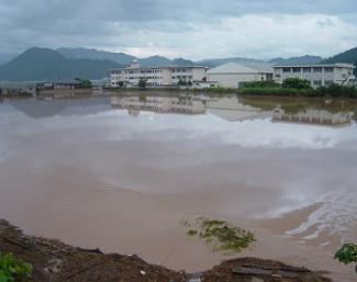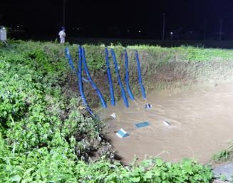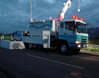 ● 「排水ポンプ」1台、「照明車」1台、「対策本部車」1台で排水作業
