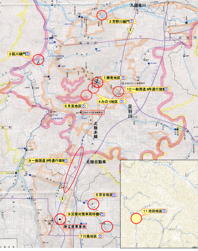 「平成16年7月福井豪雨」災害対策機械による災害対策・復旧支援箇所