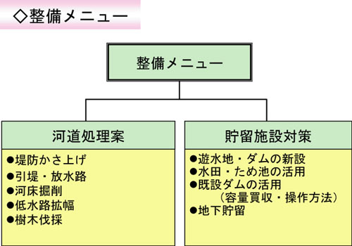 - 治水の整備メニューには、ソフト的な対策も考えるべき。