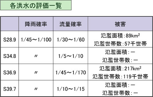 - 少なくとも戦後最大規模の洪水に耐えられる整備は必要。超過洪水による浸水への対応については、次の段階で議論すべき。