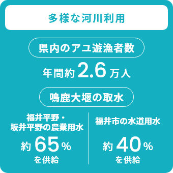 福井河川国道事務所では、豊かな水を暮らしや産業に活かすとともに、洪水などで人々の生活を脅かすことがないように河川を整備しています。管理している九頭竜川、北川及び真名川砂防の整備の取り組みや川のお役立ち情報を紹介します。