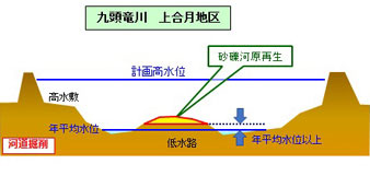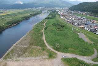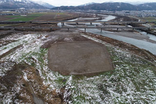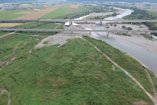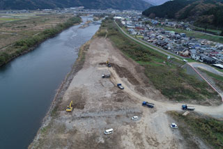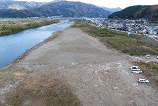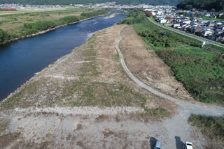 九頭竜川上流部で流下能力不足を解消するための河道掘削を実施しております。