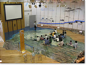このコーナーでは福井県の約70%を占める九頭竜川の広さを、 航空写真や情報カートなどから実感できる展示になっています。