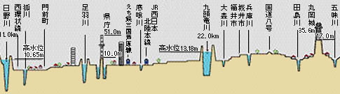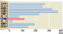 ※幹川流路延長とは、一つの水系の中で流量・流域面積の大きいものを幹川とし、河口から谷をさかのぼった分水界上の点までの流路の延長を言います。