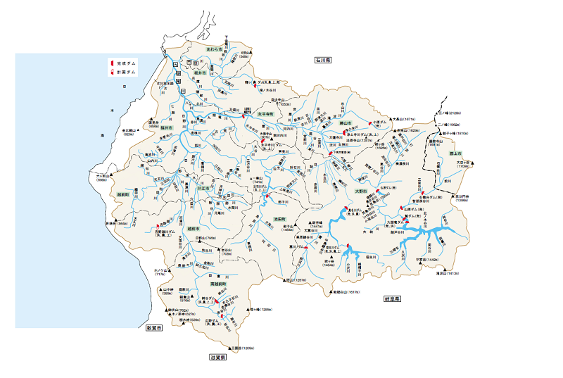 流域面積は2,930km2であり、福井県の面積の約70%を占めています。