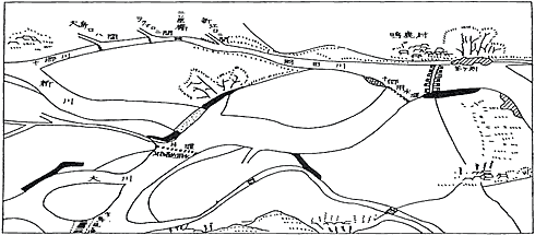 この内、十郷用水を取り入れるための堰は鳴鹿大堰所と呼ばれ、松杭を藤づるで三又に組み水中に並べて、その間に玉石を詰めて作られていました。