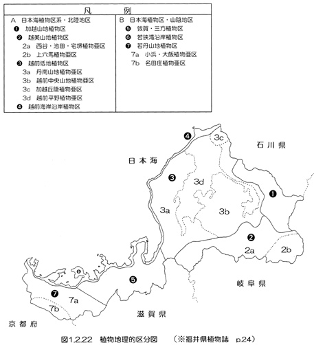 九頭竜川流域をいくつかの植物区に分け、その特徴を整理すると次のとおりとなる。