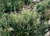 河川敷の主な多年生植物群落のうち、自然性の高い群落はカワラハハコ群落が挙げられるが、それ以外に2次的に復活したオギ・ヨシ・ツルヨシ群落あるいは低水路沿いのタチヤナギ群落がある。その他にスギナ・ヨモギ・カナムグラ・クズ・メドハギ・オオアレチノギク群落が堤防部に広がっている。なお、セイダカアワダチソウ群落の分布量は、表日本の河川に比較すると非常に少ない。
