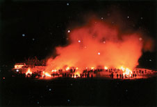 勝山左義長まつりは、2月最終土・日曜日に九頭竜川の河原で行われる火の祭典である。