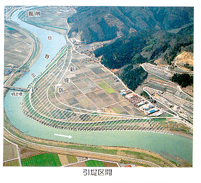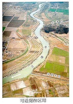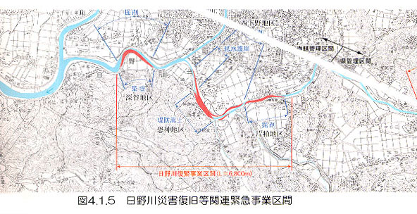 福井県が実施する浅水川改修に併せて、建設省近畿地方建設局福井工事事務所では、日野川の深谷から久喜津までの6.8kmを対象に、河道掘削や築堤などの河道改修を「日野川災害復旧等関連緊急事業」で平成11年度より実施している。