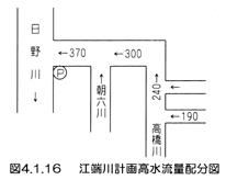 近年は、主要道路の整備が進み、市街地の拡大によって流域の都市化が顕著となってきている。一方、江端川は市街地での疎通能力が約90m3/s、中流部の田園地帯で15~80m3/sと少なく、河床勾配も市街地部で約1/1,500と緩く、集中豪雨などによって浸水被害が発生している。そこで、福井市南部の市街地拡大に伴う流出増を考慮し、主要交通網の洪水からの防御などを考慮して、超過確率1/80年で改修計画を立て、日野川合流点より上流5,709mの改修を進めることとなった。