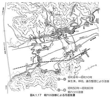 (※朝六ツ川改修と土地改良 麻生津北部土地改良区)