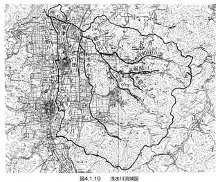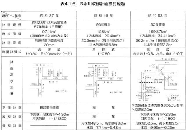 しかし、昭和35年(1960)12月に策定された「国民所得倍増計画」は、産業の発展と経済成長を基本としたものであり、そのための「全国総合開発計画」に基づき流域内においても工業団地を造成するなど、面的開発が進んだ。また、各支川においても河道改修や農業排水路整備、そして内水排除のためのポンプ施設整備が進み、浅水川に早く大量の雨水が集まり、豪雨ともなれば警戒水位に達することがしばしば生じるようになった。