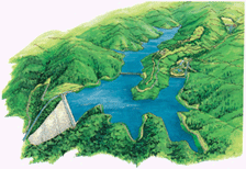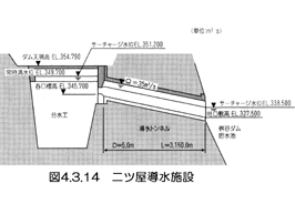 このダムは、隣接流域の広野ダム(既設)上流から分水導水(二ツ屋導水施設)する間接流域を持っている。