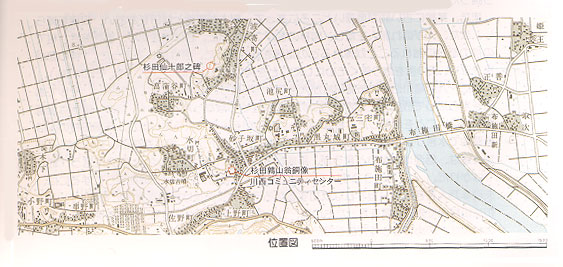 君は、仙十郎と称し、亡き父は次郎兵衛といい、亡き母は某氏といった。君が19歳の時、福井藩の家老某と江戸に行き、外国の戦艦が周辺の海に見られ、天下が次第に物騒となり、あなたは時勢が厳しいと密かに思っていた。田舎者の兵士(本人のことか?)は、かりそめに安んじて帰った。28歳にして久保氏を娶り、定一を育てた。ほどなく、久保氏が亡くなり、君は物忌みをして日々を過ごし、真言伝抄を口ずさみ、気を晴らしていた。一旦、その考えがでたらめではないかと疑いを持ち、巻を開いて嘆いていった。「百の方便は一つの誠実に及ばない。まことに、学問は至誠を主とすべきなのだ。」と。そこで、地を村に探して、学校と孔子廟建立に巨額を投じ、家蔵の蝋石の聖像を安置した。唐代の旧書物にいう「これで、学校での学問が村でできるのだ。」。しかし、たちまち役人たちは話し合い、言うのだ。『学校は抑えられるものだ。』と。そして、役人はあえて僭越にも命じたのだ「校舎を撤廃し、村の正職を奪い、家に幽閉せよ。」と。村人は、その知らせを聞き、集まってこういった。「私たちは代々、杉田氏を信頼し、先祖は子孫を育てんとしたが、どうして、その冤罪を晴らせないことがあろうか。(否ない。)」。また、書状にいわく、「杉爺は清廉で、村人を愛したが、にわかにその職を奪われたので、人々は悲しみ、復職を切望するのが村人の願いである。」と。しかし、報われなかった。