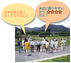 「川の通信簿」は河川空間の親しみやすさや快適性を住民の皆様との共同作業によるアンケート調査で採点していくものです。