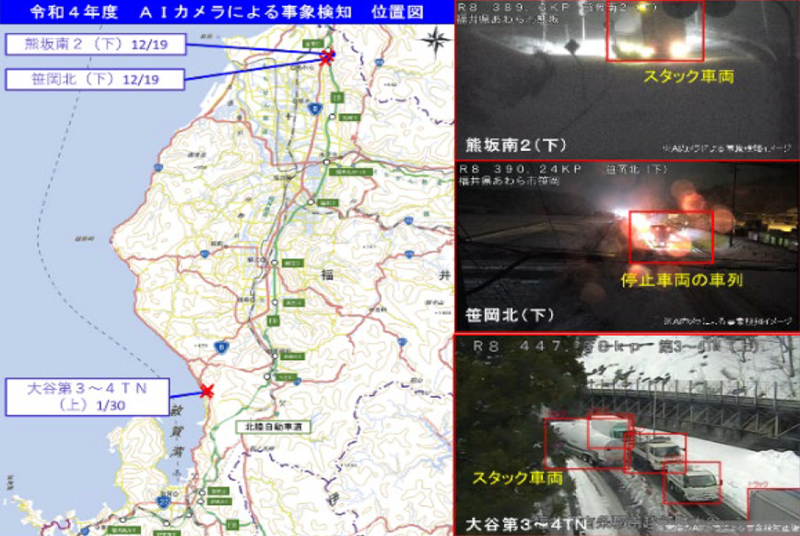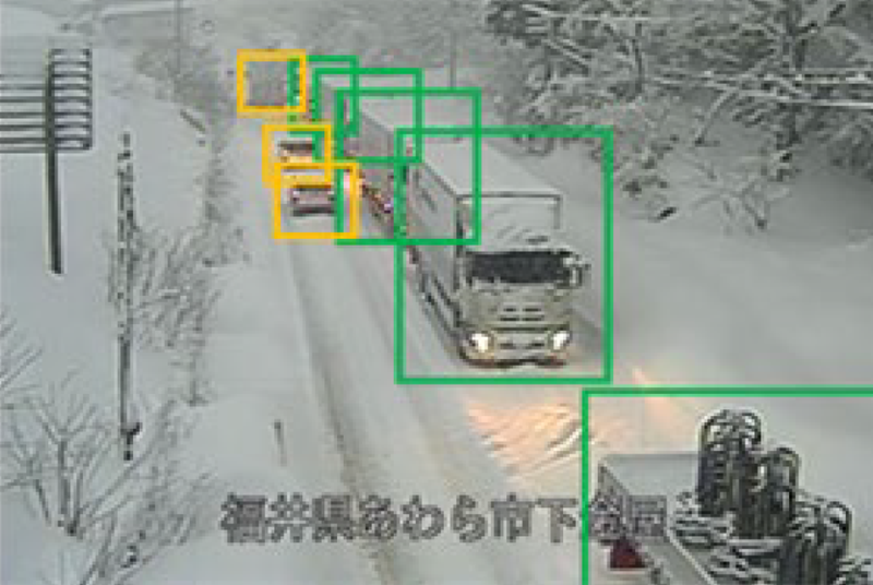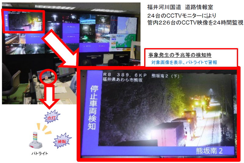大型車の立ち往生など交通障害事象を早期に発見して迅速な初動対応につなげるなど道路管理の円滑化を図ります。