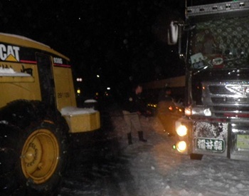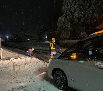 降雪時には、高速除雪車(除雪トラック・除雪グレーダ)による除雪、積雪時にはロータリー除雪車による拡幅除雪、凍結の恐れがある場合には凍結防止剤散布車による凍結防止剤の散布等により安全な路面を確保し、立ち往生等のリスク箇所付近では、牽引車両の事前配備を実施しています。