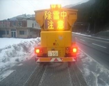 除雪機械等には携帯GPSを設置し、作業位置の情報をリアルタイムに取得しています。また、立ち往生等のリスク箇所付近では、簡易電光掲示板による注意喚起を実施しています。