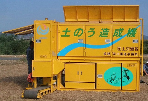 - 土砂を造成機上部の容器(ホッパー)に投入することにより、連続して安定的に土のうをつくることができます。